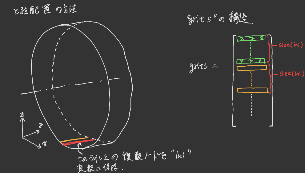[id of grits, x coordinate, y coordinate, z coordinate;…]
